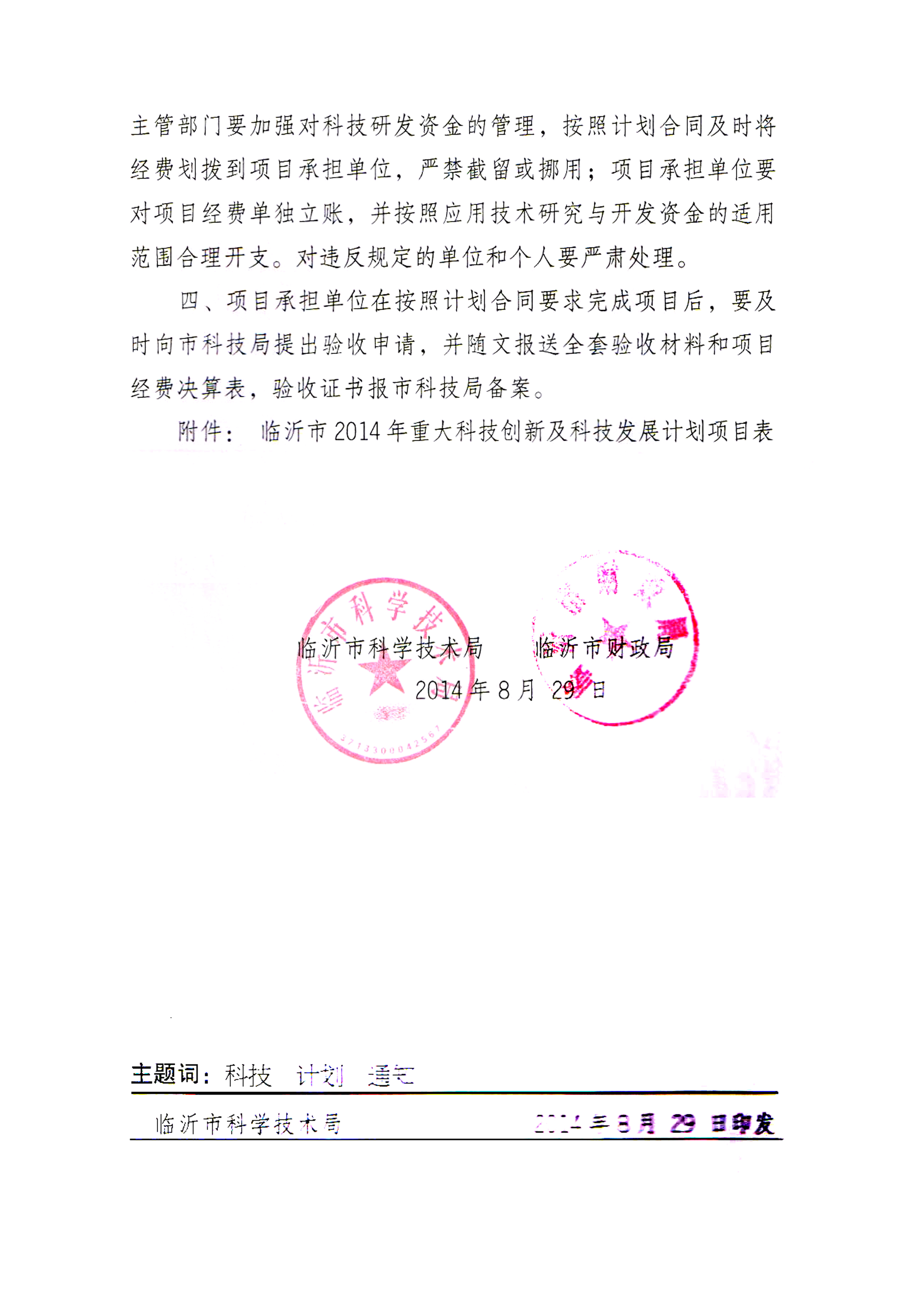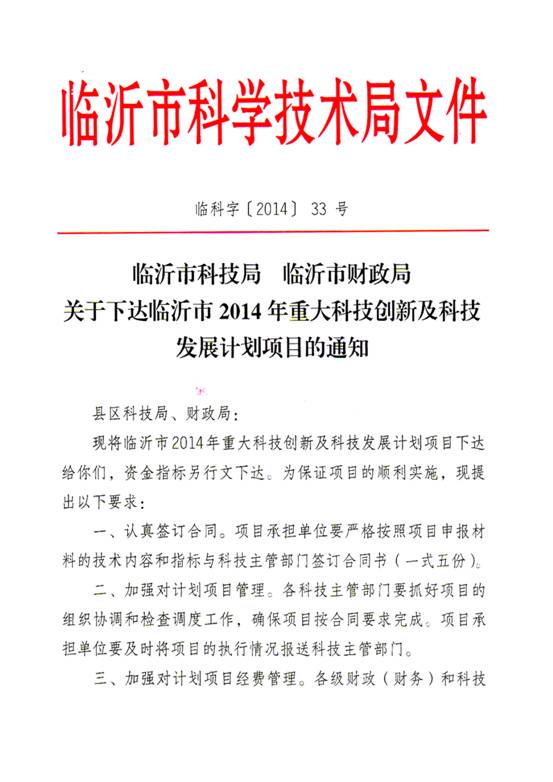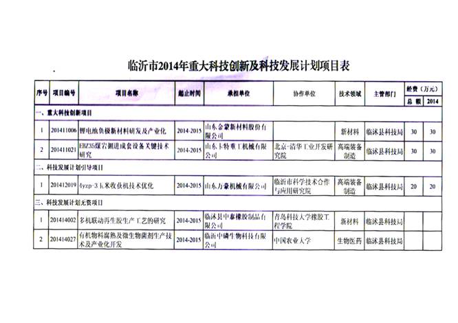 根據(jù)《臨科字[2014]33號》文件,山東金蒙新材料鋰電池負(fù)極新材料研發(fā)及產(chǎn)業(yè)化獲臨沂市2014年重大科技創(chuàng)新及科技發(fā)展計劃項目專項資金。