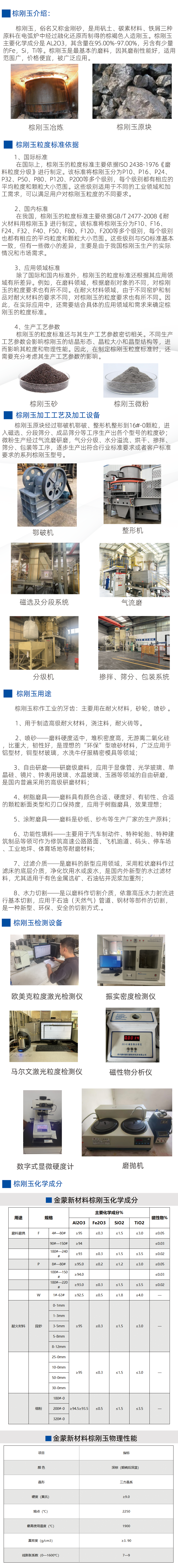 棕剛玉,俗名又稱金剛砂,是用礬土、碳素材料、鐵屑三種原料在電弧爐中經(jīng)過融化還原而制得的棕褐色人造剛玉。棕剛玉主要化學成分是 AL2O3,其含量在95.00%-97.00%,另含有少量的Fe,Si,Ti等。棕剛玉是最基本的磨料,因其磨削性能好,適用范圍廣,價格便宜,被廣泛應用。